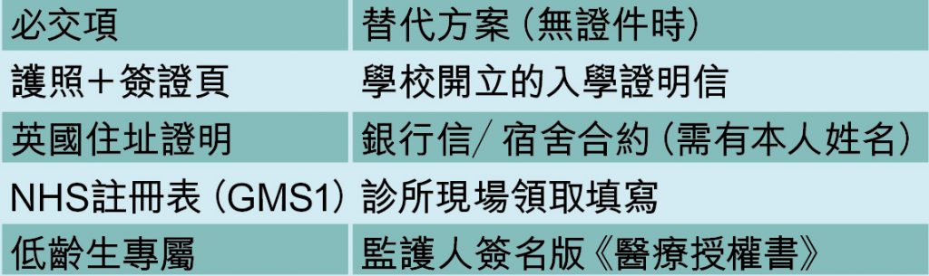 → 搜NHS官網輸入宿舍郵編,選擇步行距離內診所(通勤超15分鐘可拒收)