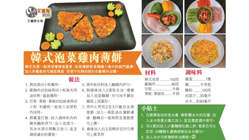韓式泡菜一般深受嗜辣者喜愛,泡菜薄餅更是韓國小食中的熱門選擇。加入各種食材可減低辣度,即使不吃辣的朋友也會樂於品嚐。