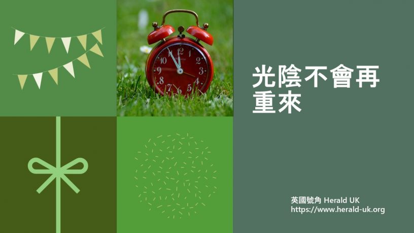 人人都聽過:「一寸光陰一寸金,寸金難買寸光陰。」只是今世代的人,對「寸金」的重量和價值難以理解,更無從比較。但若年輕男女只顧躺平,青春一去不復返,終將因「明日復明日」而蹉跎歲月。