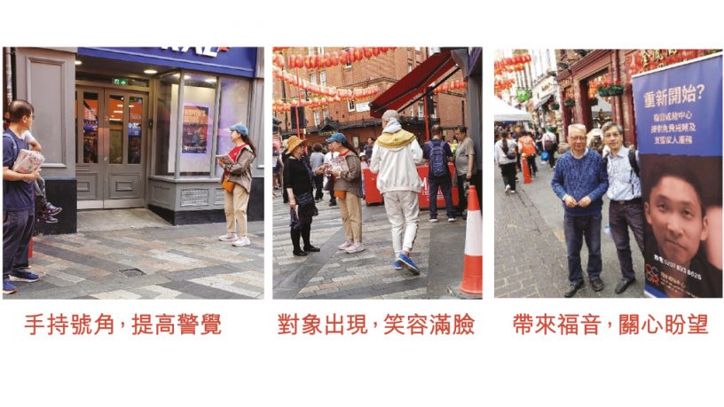 由於在埠仔工作的華人多於周一休假,常趁此日到倫敦唐人街消遣娛樂或與朋友見面,因此我們特意選定在周一下午到唐人街進行佈道事工。