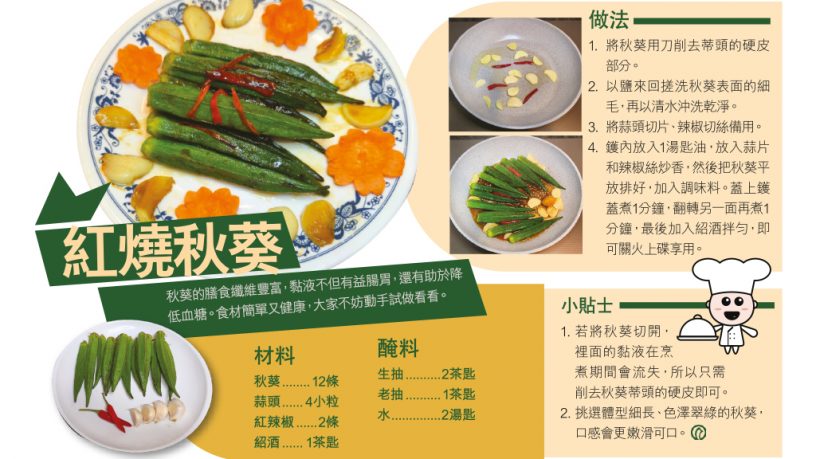 秋葵的膳食纖維豐富,黏液不但有益腸胃,還有助於降低血糖。食材簡單又健康,大家不妨動手試做看看。