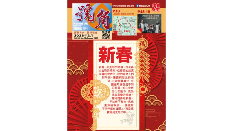2026年2月, 專題 新春 Posted by Herald UK on 29 January 2026 Read Next → 2026年2月 (斯斯細語) 終點與開端 2026年2月 (BNO專欄) 怎樣可更快做到SEN評估? 2026年2月 值得信賴的 A Level YouTube 學習頻道 專題策劃及撰稿: 馮兆雄、馬日恆、區雯慧、陸思齊、林珊一、倫德明、劉愛群、李詠祈、許麗珍、周志成、吳明山 新春,是更新的邀請,也是再次出發的時刻。從春節的起源與傳統習俗中,我們看見人們對平安、團圓與新生的渴望;在時代轉變中,中國過年展現出不同的面貌,並在中西文化交匯下,成為共享喜樂的節慶。當我們喜迎新春,不妨停下腳步,思想更深的救恩──讓更新不只停留在日曆上,而是真實臨到生命之中。 Like Herald UK Read Next → 2026年2月 (斯斯細語) 終點與開端 2026年2月 (BNO專欄) 怎樣可更快做到SEN評估? 2026年2月 值得信賴的 A Level YouTube 學習頻道