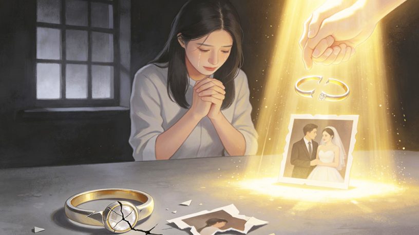 不久後,上帝奇妙地安排了一次旅程。丈夫的姪女在北京舉行婚禮,兩人需同行、同住。一天傍晚,丈夫外出健身,她獨自跪在床邊禱告,清楚領受四個字:「溫柔、安靜」。後來她知道這出自《彼得前書》三章4節。當晚她提議散步,兩人在花園裡默默走着,一圈又一圈。她謹記這四個字,決心安靜陪伴,不再像從前那樣喋喋不休、指責對方。回程起飛前,她收到丈夫的信息:「我願意回來過平淡而真實的生活。」婚姻出現了轉機。